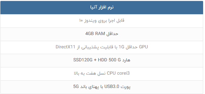 مشخصات سیستم پیشنهادی جهت اجرای نرم افزار آنیا